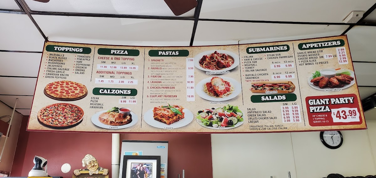 Valentino's Pizza offers an extensive menu that caters to a variety of tastes, perfect for both casual and family dining. For those looking for a deal, the restaurant features some irresistible specials, such as the Large Cheese + 1 Topping Pizza for $12.99 + tax (Monday through Wednesday, available for call-in and walk-ins only), and a 16” X-Large Pizza with 3 toppings or even 2 Large Pizzas with 3 toppings. Their menu includes a selection of appetizing appetizers, such as Small Cheese Bread, Large Garlic Bread Sticks, and Potato Wedges. The salad options cater to lighter cravings, including the Small House Salad, Small Caesar, and Small Greek. For more substantial fare, diners can enjoy 6” or 12” Submarines, such as the Pizza Sub and Meatball Sub. Their pasta offerings like Spaghetti, Lasagna, and Chicken Parmesan offer hearty, flavorful meals. For those craving a warm, savory bite, the calzones come in a variety of options, from the 6” BYO Calzone to the 6” Chicken Bacon Ranch. Specialty pizzas are a standout, with choices like Chicken Alfredo, BBQ Chicken, and Philly Cheesesteak available in sizes from Small to X-Large. If you're feeling adventurous, there's always the option to build your own pizza with the BYO Cheese Pizza. Finally, finish off your meal with a sweet treat, such as Large Sweet Cheese Bread or Cheesecake. Drinks, including Coca-Cola, Diet Coke, and Sprite, are also available to complement the meal. Whether you're stopping by for a slice or indulging in a full meal, Valentino’s menu has something for everyone.